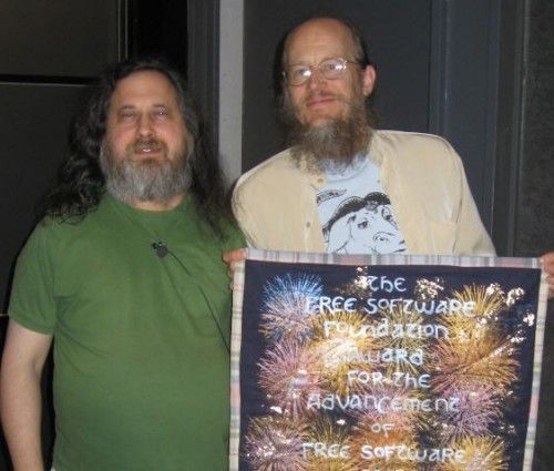 La reflexión me viene tras ver ayer unas imágenes de Richard M. Stallman en las que se le veía entregando los premios de la Free Software Foundation. En la imagen aparece Stallman con John Gilmore, uno de los premiados, y tras ver la foto no pude evitar pensar que vaya telita la imagen que dan algunos de los representantes del mundo Linux.