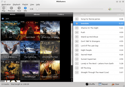 En último lugar estaría Minitunes, el desarrollo más nuevo de todos y que Nismrc nos presentó hace muy poco, así que os remito a su entrada para conocerlo mejor. En cualquier caso dejo aquí mi opnión, que no es otra que pinta muy bien, para lo temprano de su desarrollo. De momento lo recomendaría a quienes no tengan una gran colección musical o simplemente quieran probarlo.