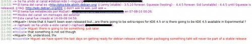 He entrado en la sala IRC de Debian-KDE a ver un poquillo qué se estaba cociendo, dado el importante momento en que nos encontramos en la distro.