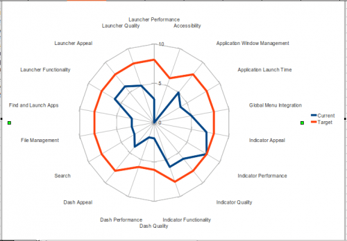 Sea como fuere, el artículo del desarrollador de Canonical es interesante porque apunta a muchas de las mejoras en las que se está trabajando, representando esa evolución con un curioso diagrama «de araña» que muestra qué se quiere conseguir, qué se había conseguido en Maverick y cuál es el estado actual del desarrollo de Unity. Spencer habla de tres casos: aquellos en los que Natty ya es mejor que Maverick, en los que se equiparan y en los que es Maverick quien sigue siendo superior.