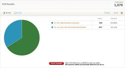 Las conclusiones de la encuesta parecen claras: dos terceras partes de los que contestásteis creéis que Unity no debería haber aparecido en Ubuntu 11.04, ya que probablemente no esté demasiado pulido. El 33% restante créeis (creemos, me incluyo en ese porcentaje) que Unity podrá hacer su debut con garantías.