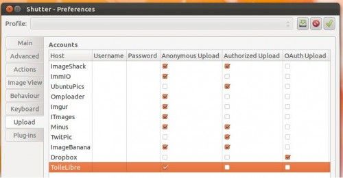 Como señalaban hace unos días en OMG! Ubuntu!, en las preferencias de Shutter podremos introducir nuestras credenciales en cualquiera de estos servicios si queremos subir imágenes a nuestras respectivas cuentas de usuario en esos servicios.