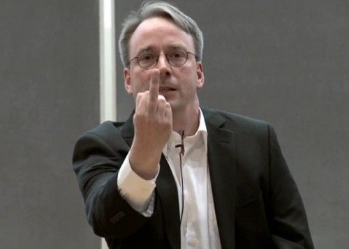 Un Linus Torvalds muy clarito en sus declaraciones. Este mismo año cuando llamó imbéciles a los chicos de SUSE por la gestión de seguridad o más recientemente cuando mandó a NVIDIA por donde amargan los pepinos con un directo Fuck You, criticando los controladores libres y en general el soporte de la compañía gráfica a Linux.