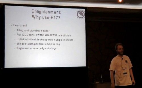 Como ya sabréis a través del artículo que publiqué narrando mi segundo día en LinuxConEurope 2012, una de las charlas a las que asistimos fue «Preparing the Scalable Desktop Environment, Enlightenment DR17 For Release«. La charla la ofreció Mike Blumenkratz, que trabaja para Samsung y que además es Release Manager del proyecto Enlightenment.