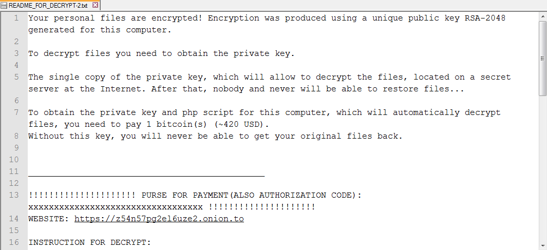 En cada directorio afectado se agregaría una nota en texto plano para cumplir con el rescate de 1 bitcoin, que ahora ronda un valor en torno a los 300 euros.